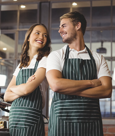 Franquias, padarias e confeitarias, cafés e negócios alimentícios locais.